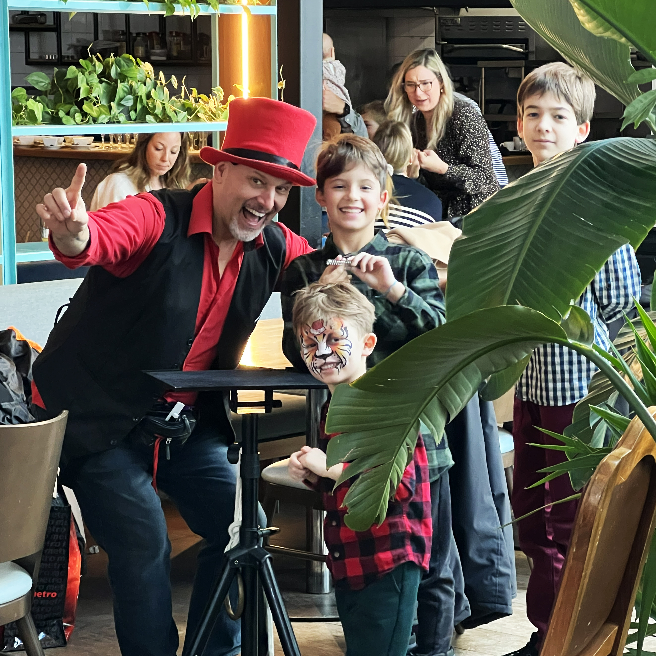 Chaque intervention devient un petit spectacle privé destiné à tous, peu importe l’âge. Grâce à une formule d’animation mobile, le magicien se déplace d’un groupe à l’autre, investissant différents espaces pour faire naître l’émerveillement partout où il passe.